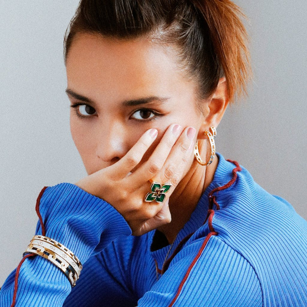 Diamonds enhance the beauty of these stunning earrings by Roberto Coin, featuring 18kt yellow gold and the uniqueness of a handmade creation.