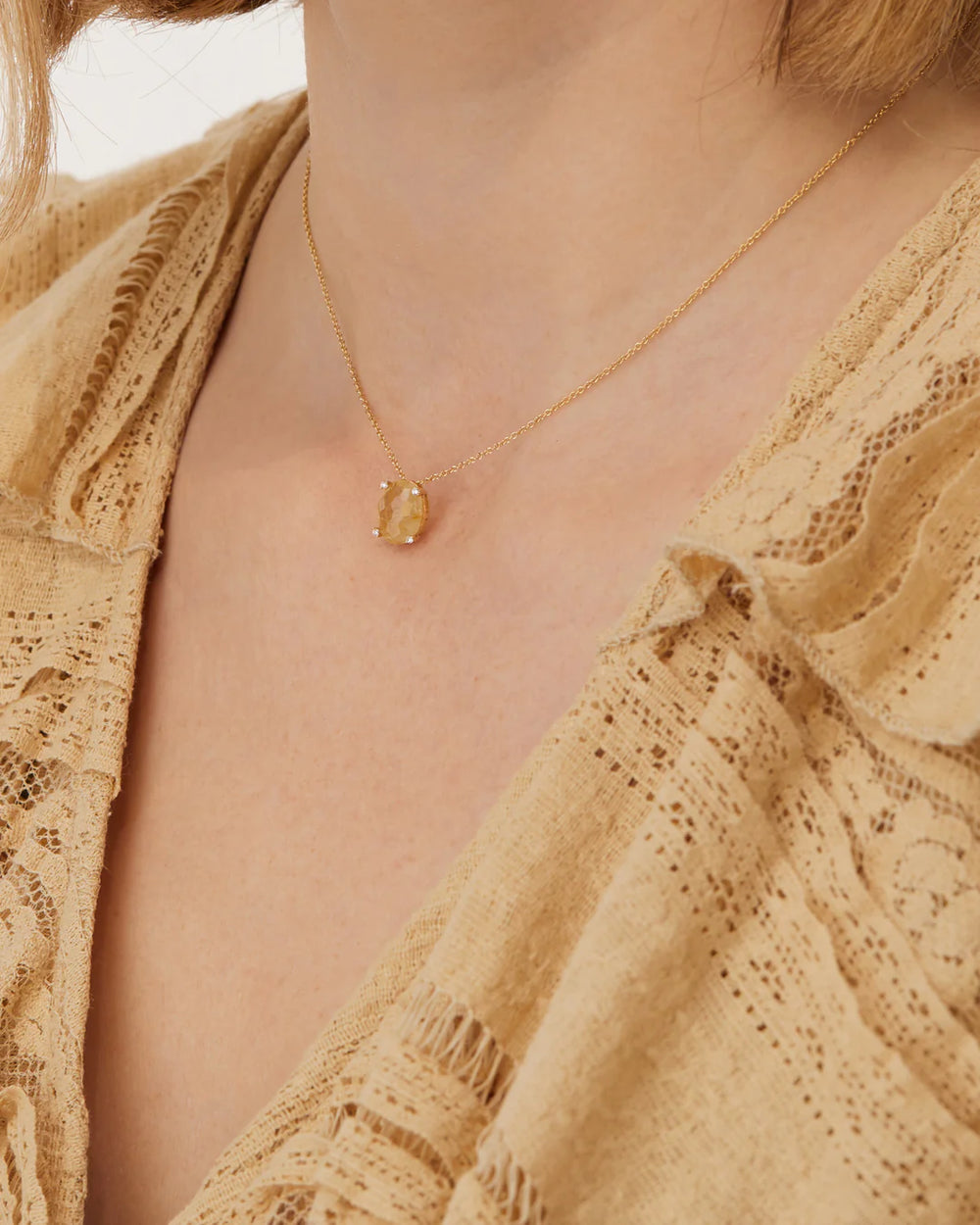 A jewel that our designer laura conceived as an ode to one of her favorite stones: rutilated quartz. Its incredible internal streaks, so perfectly imperfect, are embraced by sparkling diamonds and make this 18kt gold necklace a masterpiece of essentiality and elegance, to be worn alone or together with the larger model (CS15-576). A jewel with a timeless charm, capable of reminding us how precious (our) uniqueness is.